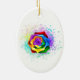 Large, blooming rose with rainbow petals on white background, painted over with splashes of colorful, bright paint. 3d