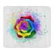 Large, blooming rose with rainbow petals on white background, painted over with splashes of colorful, bright paint. 3d