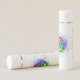 Large, blooming rose with rainbow petals on white background, painted over with splashes of colorful, bright paint. 3d