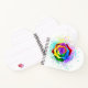 Large, blooming rose with rainbow petals on white background, painted over with splashes of colorful, bright paint. 3d