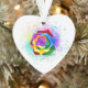 Large, blooming rose with rainbow petals on white background, painted over with splashes of colorful, bright paint. 3d