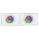 Large, blooming rose with rainbow petals on white background, painted over with splashes of colorful, bright paint. 3d