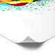 Large, blooming rose with rainbow petals on white background, painted over with splashes of colorful, bright paint. 3d