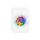 Large, blooming rose with rainbow petals on white background, painted over with splashes of colorful, bright paint. 3d