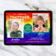 Joint birthday invitations featuring a colorful rainbow background, with vibrant typography and two photos of your choice.