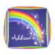 Colorful rainbow stripe kids name square pouf
