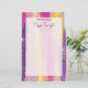 Stationery paper with an abstract background design. Vibrant stripes in both bold and pastel colors. Pinks, blues, purples and yellow colors combined with faux gold sparkly glitter layered over top.