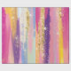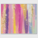 Wrapping paper with an abstract background design. Vibrant stripes in both bold and pastel colors. Pinks, blues, purples and yellow colors combined with faux gold sparkly glitter layered over top.