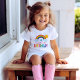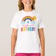 Celebrate her special day with this vibrant white tee featuring an illustrated rainbow with clouds and sunshine above bold multicolor "Birthday" lettering. The name, age number, and birthday details are all easy to customize for a personalized party-day look. Perfect for rainbow-themed birthdays, party photos, and making the guest of honor feel extra special.