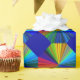 This colorful wrapping paper features a repeating pattern of a brilliantly colored abstract circle of a rainbow vortex. Lines in every color of the rainbow lead into the center: red, orange, yellow, green, blue and purple. A three dimensional effect is created.