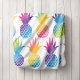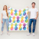 A bright, cheerful fleece blanket covered in rows of watercolor pineapple silhouettes in vibrant rainbow hues of pink, blue, purple, yellow, and green. Each pineapple features a unique gradient color blend for a playful, artistic effect on a clean white background. A fun tropical throw perfect for kids rooms, dorm decor, beach houses, or anyone who loves pineapple style.