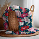 Pretty and colorful red floral illustrated pink red and white flower pattern blue blanket.