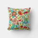 Colorful Retro Birds Flowers & Bunny Rabbits Throw Pillow