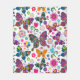 Colorful Retro Butterflies And Flowers Pattern Fleece Blanket
