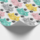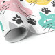 A Fun Retro And Colorful Wrapping Paper of Different Colored Cat Faces And Black Paws