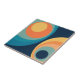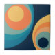 Abstract illustration of colorful retro style circles in yellow, blue, orange and turquoise colors on navy blue background