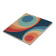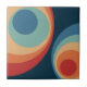 Abstract illustration of colorful retro style circlesbeige, pastel orange, orange and turquoise colors on navy blue background.