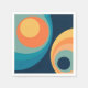 Abstract illustration of colorful retro style circles in yellow, blue, orange and turquoise colors on navy blue background