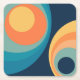 Abstract illustration of colorful retro style circles in yellow, blue, orange and turquoise colors on navy blue background