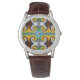 Modern graphic design made of parrot feathers in a delicate, floating look. Beautiful colors in blue, white, yellow and brown - Cool retro design! Unique Watch for anyone! Designed by Marions Artwork.