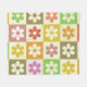 This is beautiful colorful retro flowers on checkerboard pattern in orange, yellow, green , red and biege.