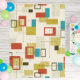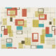 Colorful retro geometric shapes and lines seamless pattern with a light beige background.
