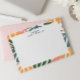 The paper notecard features a delightful pattern inspired by vintage groovy leaves, designed in warm and vibrant watercolor palette of green, orange, pink, yellow, and dusty blue. The background showcases an array of cute and boho plants and leaves.