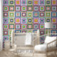 Colorful Retro Mid-Century Mid-Mod Crochet Blossom Wallpaper