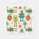 This vibrant image features a fun and colorful pattern of various retro-style robots in different shapes and designs. The playful robots are set against a neutral background, making them stand out. This whimsical design is perfect for children's rooms, tech-themed events, or anyone who loves unique robot illustrations.