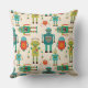 Colorful Retro Robots Pattern Throw Pillow