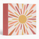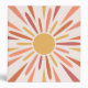 Abstract retro style sunshine illustration with pink, brown, orange, purple, and yellow sun rays decoration on pastel pink background for summer lovers.