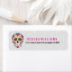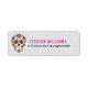 Cool colorful retro flowers sugar skull. White paisley damasks background with customizable text