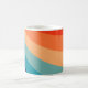 Abstract illustration of colorful (red, orange, blue, turquoise, navy blue) sun rays with curvy geometric stripes decoration