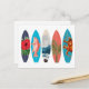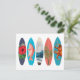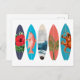 A colorful retro themed surfboard design featuring different types surfboard art. Vintage illustrations of tropical fish, beach, hibiscus flowers and palm trees create an eclectic mix of colorful surfboards. Ideal surfboard design for anyone who loves surfing, the beach, colorful beach themed gifts and décor.