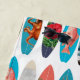 A colorful retro themed surfboard pattern design featuring different types surfboard art. Vintage illustrations of tropical fish, beach, hibiscus flowers and palm trees create an eclectic mix of colorful surfboards. Ideal surfboard design for anyone who loves surfing, the beach, colorful beach themed gifts and décor.