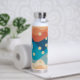 Colorful Retro Waves & Daisies Pattern Monogram Water Bottle