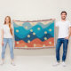 Colorful Retro Waves & Daisies Pattern Throw Blanket