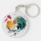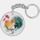 Colorful Rooster. Calligraphy and watercolor. Keychain