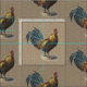 Colorful Rooster On Faux Jute Burlap Pattern Fabric