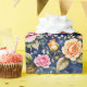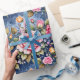 The colors and layering in this pink and gold roses design have a fantastical effect, floating over deepening layers of blue leaves and shadow. For extra delight, tiny sprays of blue and pink single petal posies and leaves are interspersed in the rose garlands. Seamless image.