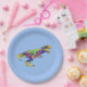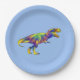 Colorful Running T Rex Psychedelic Dinosaur Art Paper Plates