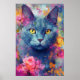Colorful Russian Blue cat Art Poster