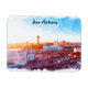 Stunning San Antonio Texas Vintage Cityscape Flexible Photo Magnet featuring a panorama view and the skyline of the city in Texas in a watercolor scheme. Great travel gift idea and souvenir for every visitor of the american city. Purchase now.