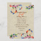 Colorful scroll leaf on beige wedding invitation