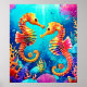 Discover a vibrant pair of seahorses amidst colorful coral and marine life in a beautiful underwater scene. Explore the charm of the ocean depths (This Design Made With AI). Place Order Today and Embrace the Joy of Shopping!