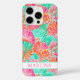 Customize this colorful coral and turquoise watercolor shell iPhone 16 pro case with your your name in a trendy modern CAP font in pink on white. It's so modern and trendy!
