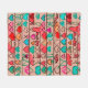 This blanket features a vibrant and whimsical design composed of rows of colorful what appears as hand-drawn hearts and playful ribbon-like shapes on a soft beige background. The hearts vary in size, shape, and color, including shades of red, pink, teal, orange, and blue, adding a dynamic and artistic feel. The design is accented with abstract, doodle-like elements such as bows and flowing lines that enhance its charm. A monogram is positioned in the bottom of the blanket, enclosed in a square, allowing for personalization by replacing the initials. This blanket is both functional and a statement piece, making it perfect for adding a personal and cheerful touch to any space.