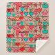 Colorful sketch-like hearts, and ribbons monogram sherpa blanket