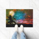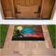 This door mat has a pretty scenery picture on it, it looks like it's from another world.