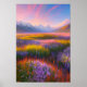 A field of colorful flowers stretches out as far as the eye can see, with a beautiful blue sky and pink clouds overhead. In the distance, a majestic mountain range completes the natural panorama, creating a breathtaking scene. This digital artwork captures the essence of the beauty of nature and the awe-inspiring scale of the natural world, inviting the viewer to appreciate the vastness of the universe and their place within it.
